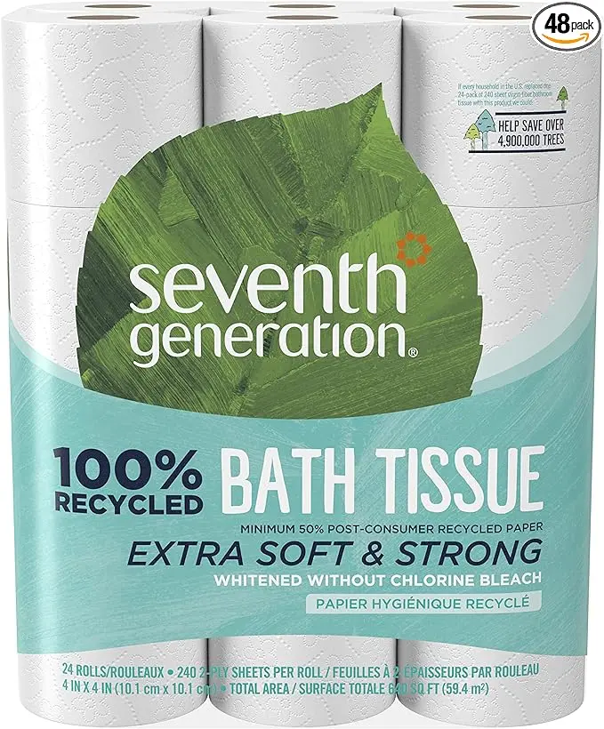 At $51.26 for a pack of 48 rolls, you can grab it on Amazon. This toilet paper stands out because it’s made from 100% recycled content and uses no added dyes, inks, and fragrances—plus no chlorine—perfect for hosts looking to cut their environmental footprint significantly.